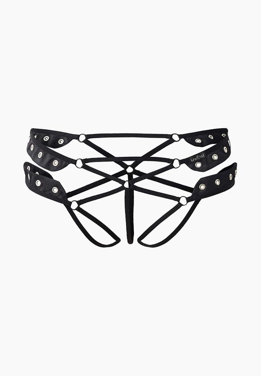 Трусики с высокой талией, от которых невозможно отвести взгляд. Сложносочиненные переплетения черных лент на женских бедрах будоражат воображение, заставляя мужские сердца замирать в предвкушении крутого эротического приключения. Открой новые грани экстремального удовольствия вместе с новой моделью «Easytolove».