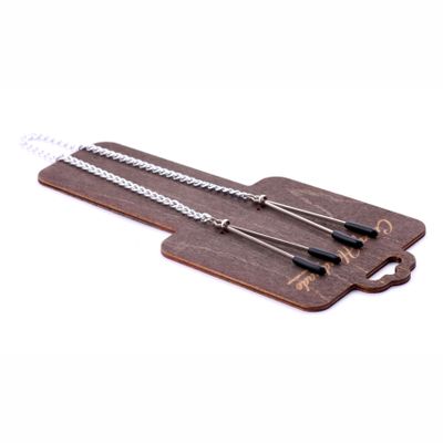 Зажимы и пирсинг пользуются невероятной популярностью среди любителей БДСМ. Особенно популярны приспособления для сосков, которые, как известно, являются очень чувствительным. Невероятные эмоции вместе с ними вам гарантированы. Между собой зажимы соединены металлической цепью, которая одновременно служит своебразным утяжелителем для дополнительных ощущений во время сексуальных игр. Удобная регулировка силы сжатия с помощью колечка-ползунка позволит легко подобрать желаемый уровень воздействия.