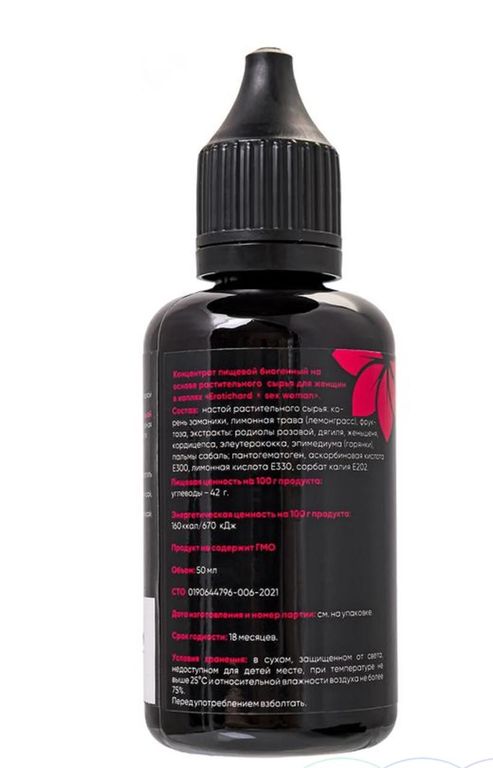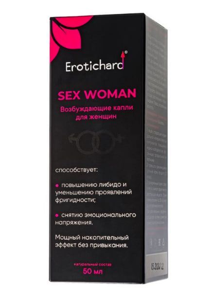 Капли возбуждающие для женщин Erotichard Sex Woman это натуральный негормональный концентрат на основе растительных компонентов, разработанный для нормализации работы женской репродуктивной системы и повышения сексуальной активности. Капли содержат мощные афродизиаки и природные адаптогены, способствующие увеличению кровообращения в области органов малого таза, что усиливает их чувствительность и улучшает сексуальные ощущения. Натуральные растительные компоненты оказывают мягкое воздействие на организм, не вызывая привыкания и не перегружая сердечно-сосудистую систему.