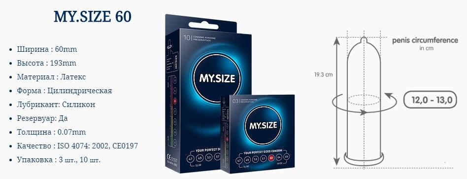 Уникальные презервативы MY.SIZE размерного ряда, разработаны при поддержке различных международных институтов, с учетом анатомических особенностей человеческого тела. В ходе опроса мужчин проживающих в различных странах было выявлено, окружность полового члена мужчины непропорциональна длине.