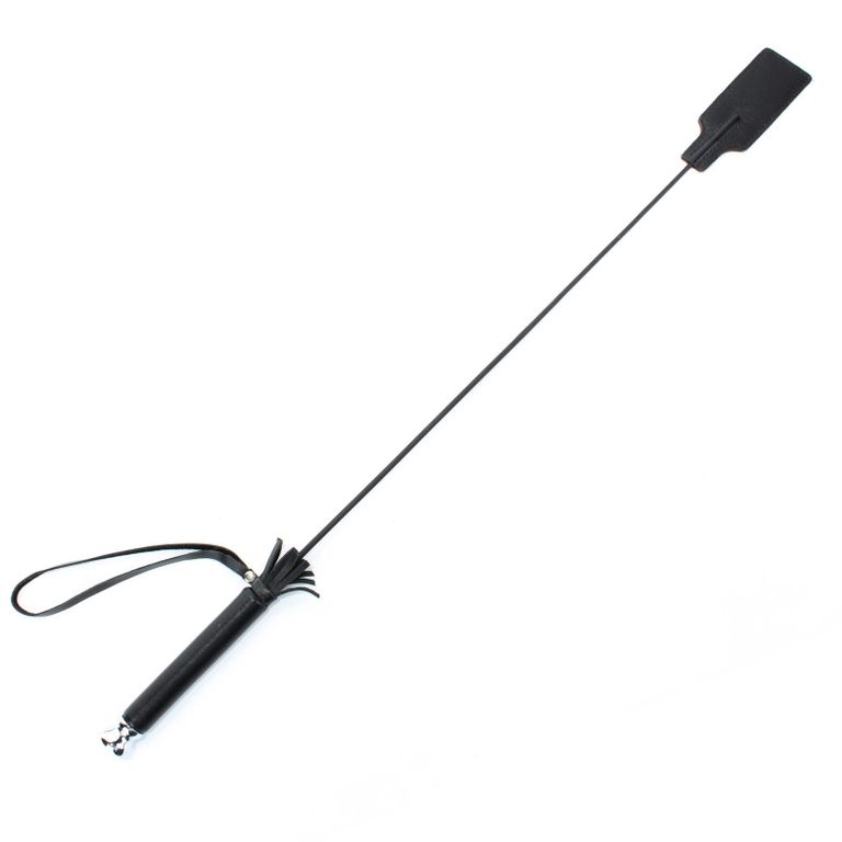 Рукоятка стека выполнена из натуральной кожи черного цвета, на конце девайса расположен кожаный шлепок размером 8х4см.